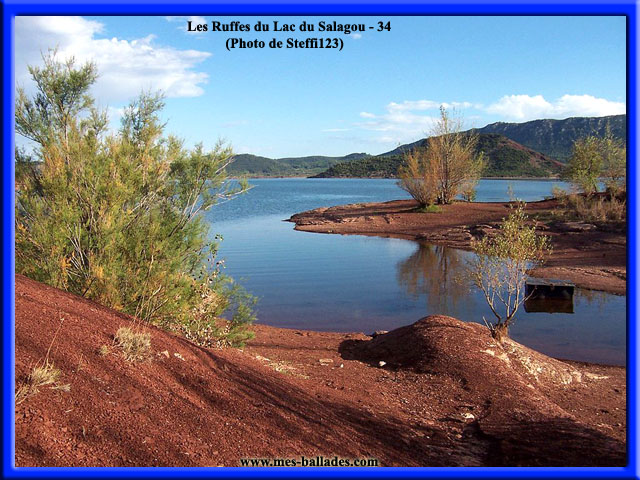 Dans les hautes terres de l’Hérault, la Vallée du Salagou dévoile des paysages uniques. Grace à la main de l'Homme, le Lac du Salagou mêle le bleu profond de ses eaux aux plis écarlates de la « ruffe », une roche qui est vieille de 250 millions d’années. Les conditions climatiques ont permis aux sels de fer de s’oxyder, combinés aux sédiments argileux, ce qui explique la couleur ocre surprenante de ses roches, appelées les ruffes.