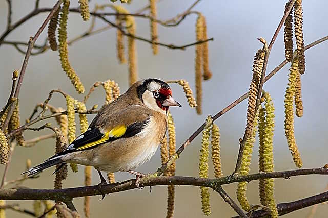 Le Chardonneret élégant est un petit oiseau sauvage, qui appartient à la Faune sauvage de l'Indre-et-Loire, en région en région Centre-Val-de-Loire, en France. Le Chardonneret élégant est aussi appelé Carduelis carduelis. C'est un petit passereau, de la Famille des Fringillidés. C'est une espèce, partiellement migratrice, de taille petite, au plumage très bariolé. Il tient son nom de sa nourriture favorite qui est le chardon. Le terme « élégant » est due à l’harmonie de ses couleurs. L'adulte a une face rouge écarlate, entourée de blanc et de noir (ou de gris chez 3 sous-espèces), le dos et les flancs sont bruns, la queue noire avec des taches blanches et son croupion est blanc. Le plumage de ses ailes est noir, rayé d'une large bande d'un jaune vif. L'adulte mesure environ 20 à 25 cm d'envergure, 12,5 cm de longueur et pèse de 14 g. à 18 g. Son chant est un gazouillis fluide et répété dont les « sticlitt » et les « didelitt » s'entremêlent. Lorsqu'il est anxieux il lance un doux « èh-i » et des rafalements. Son agressivité se traduit par un « crrrr » guttural. Il est granivore, se nourrissant de graines de chardons, d'ou son nom, et de bardanes, grâce à son bec effilé, il enlève les graines, sans se piquer et parvient à les décortiquer, très habilement. Il apprécie aisso les braines d'aulnes et de bouleaux. La fleur de cosmos, fanée ou en train de sécher, est aussi un régal pour cet oiseau. L’espèce est classée "VU" (vulnérable) sur la Liste Rouge des espèces menacées, en France, éditée par l’Union internationale pour la conservation de la Nature (UICN). Le Chardonneret Elégant vient souvent se nourrir, dans les mangeoires, mises à sa disposition, en hiver.