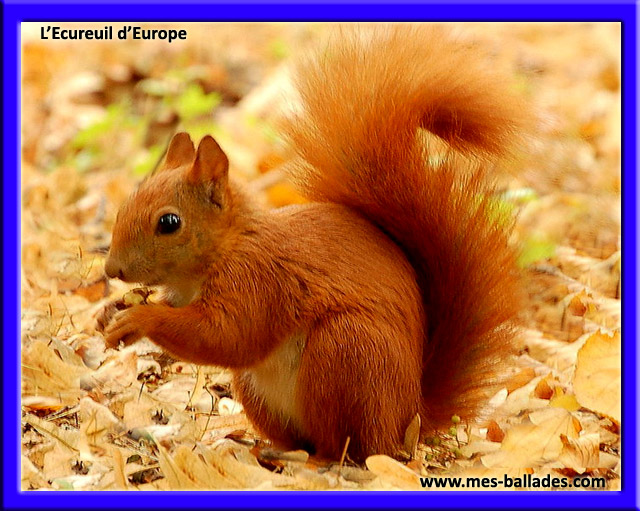 L'Ecureuil fait partie de la Faune qui vit dans le Jura, en région Bourgogne-Franche-Comté, en France. Il n'est pas rare d'apercevoir un petit écureuil, descendre à toute vitesse d'un arbre, pour venir manger des noisettes puis remonter tout aussi vite dans un arbre, tout en vous observant, discrètement, du coin de l'oeil. Ce petit animal est la coqueluche des enfants. Il est d'une rapidité et d'une agilité stupéfiante. Sa couleur varie d'un roux vif à un roux presque rouille. Ce sont des animaux très craintifs et qui se sauvent, sous vos yeux, à une vitesse stupéfiante. Vous voici prévenus, si vous voulez les photographier, mieux vaut vous armer de patience ! Si vous voulez en prendre un, en photo, préparez votre appareil photo, réglez-le avant, posez au sol quelques noisettes et noix, et armez-vous de patience, sans bouger, pour ne pas l'effrayer.