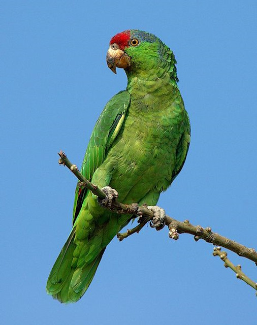 L'Amazone à joues vertes est aussi visible au Parc des Oiseaux.