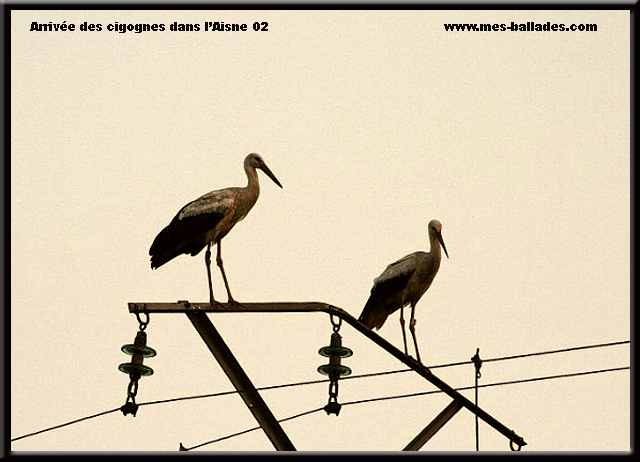 Au printemps, ne soyez pas surpris en voyant des cigognes comme celles-ci, qui font une pause dans l'Aisne, revenant des régions plus chaudes, où elles viennent de passer l'hiver, pour retrouver leurs nids en Alsace, dès le printemps. Cette année, fin aôut, j'ai découvert ma première cignogne, posée dans un champ, qui paraissait avoir besoin de reprendre des forces, avant de repartir vers les pays plus chauds, pour affronter l'hiver.