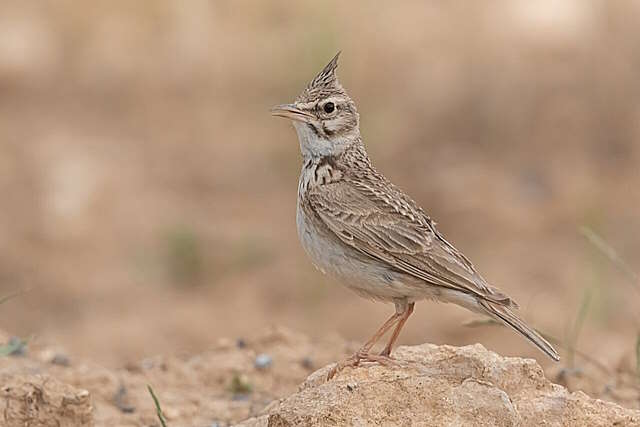 Le Cochevis Huppé est un oiseau sauvage, qui appartient à la Faune sauvage de l'Indre-et-Loire, en région en région Centre-Val-de-Loire, en France. Le Cochevis huppé est aussi appelé Galerida cristata, est une grosse alouette, de silhouette ronde et trapue. Sa livrée aux teintes terreuses, lui offre une bonne homochromie, avec son milieu environnant. Le dessus de l'oiseau paraît uniformément gris brun, le dessous du corps est gris blanchâtre, partiellement strié. Le dessous des ailes est roux, ce qui est visible en vol. Sa queue est assez courte. Une large huppe sur le crâne, tantôt dressée, tantôt rabattue, est caractéristique. Les ailes sont assez larges et une bordure jaunâtre sur la queue est visible à l'envol. Il possède également une bande latérale sur la gorge et une bande sombre derrière l'oeil, typique du genre Galerida. Il mesure entre 17 cm et 18 cm de long, avec une envergure de 29 cm à 38 cm. Il pèse entre 35 et 50 g. La femelle présente un plumage similaire au mâle mais est légèrement plus petite. Il peut être différencié de l'Alouette des champs par sa crête assez pointue, sa queue sans bords blancs et son bec pointu, incliné vers le bas. Il est assez proche du Cochevis de Thékla, que l'on trouve dans des zones plus arides ou rocailleuses et à plus haute altitude, et dont le bec est plus court. Le Cochevis huppé est granivore, avec une préférence pour les graminées et les amaranthacées. Il est plus adapté aux petites graines qu'aux grandes. Il peut aussi se nourrir de quelques insectes, dont des fourmis. Le nid n'est pas structuré, il est fait d'herbes et de racines, situé au sol. La femelle effectue 2 pontes annuelles avec 4 ou 5 œufs bruns. Le Cochevis huppé est la proie de prédateurs :l'aigle royal, la Pie bavarde, le Choucas des tours, la Belette d'europe, le faucon crécerelle.