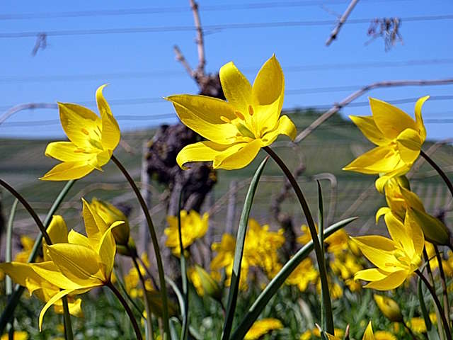 La Tulipe sauvage appelée Tulipa sylvestris est en voie de disparition en Mayenne, dans la région Pays de la Loire, en France. Tulipa sylvestris est surtout une plante messicole en Europe de l'Ouest, dans les vignes. Avant 1930, on la trouvait dans plusieurs stations. Depuis, il ne reste que deux stations où l'on peut encore l'admirer, à Saint Denis-d'Anjou. Sa disparition est due aux pesticides, utilisés pour le désherbage des vignes. Plutôt rare en Europe de l'Ouest, on la rencontre en particulier dans les vergers et les vignes (qu'elle peut densément envahir), et dans une moindre mesure dans les champs négligés, les talus routiers et les bois clairs plutôt secs et calcaires. Dans le Bassin méditerranéen elle fréquente divers milieux méditerranéens et montagnards. En Europe de l'Est et en Asie centrale, elle abonde surtout dans les steppes.