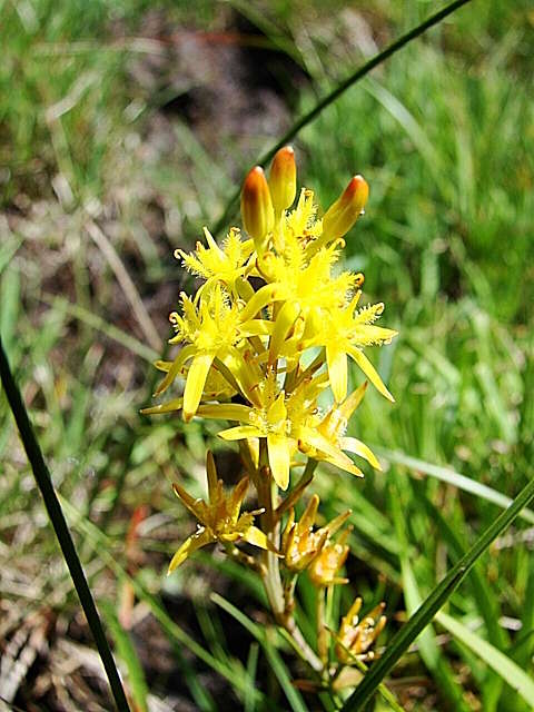 La Narthécie des Marais appelée aussi Narthecium ossifragum, Narthécie brise-os, Narthécie ossifrage. La Narthécie des Marais fait partie de la Flore sauvage qui pousse dans le département de la Mayenne, dans la région Pays de la Loire, en France. La Réserve des Egoutelles sert à préserver ce site naturel, en protégeant sa flore et à sa faune, ainsi que son patrimoine géologique ou paléontologique. La Narthécie des Marais est une plante herbacée, de la Famille des Narthéciacées qui pousse dans les tourbières européennes. C'est une plante moyenne (10 à 40 cm), érigée de fleurs jaunes en épi, d'une forme étoilée. Les filets des étamines sont couverts de poils jaunes. Sa période de floraison a lieu de Juillet à Septembre. C'est une plante hermaphrodite. Ses feuilles sont linéaires, vert glauque.