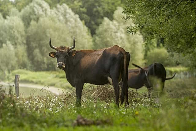 Plus loin, un troupeau d'AUROCHS nous regarde, d'un air inquiet. Il est vrai qu'un petit est à protéger, parmi eux.