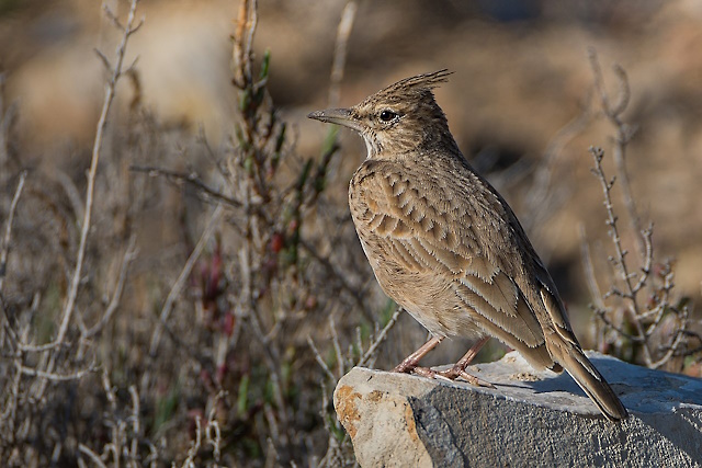 Le Cochevis Huppé appelé aussi Galerida cristata est une grosse alouette, de silhouette ronde et trapue. Sa livrée aux teintes terreuses lui offre une bonne homochromie avec son milieu environnant. Le dessus du Cochevis Huppé paraît, uniformément, gris brun, le dessous du corps est gris blanchâtre, partiellement strié. Le dessous des ailes est roux, ce qui est visible en vol. Sa queue est assez courte. Une large huppe sur le crâne, tantôt dressée, tantôt rabattue, est caractéristique. Les ailes sont assez larges et une bordure jaunâtre sur la queue est visible à l'envol. Il possède une bande latérale sur la gorge et une bande sombre, derrière l'oeil. Il mesure entre 17 cm et 18 cm de long, avec une envergure de 29 cm à 38 cm. Il pèse entre 35 gret 50 gr. La femelle présente un plumage similaire au mâle mais est légèrement plus petite. Il peut être différencié de l'Alouette des champs, par sa crête assez pointue, sa queue sans bords blancs et son bec pointu, incliné vers le bas. Il est assez proche du Cochevis de Thékla, que l'on trouve dans des zones plus arides ou rocailleuses et à plus haute altitude, et dont le bec est plus court.