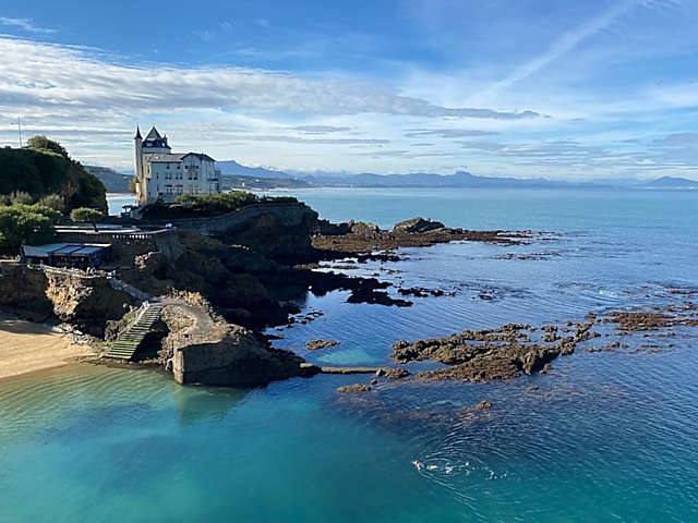 La Plage Miramar et la Grande Plage se situent à Biarritz, dans le département des Pyrénées-Atlantiques, dans la région Nouvelle-Aquitaine, en France. Vous pourrez admirer la Plage du Miramar depuis la passerelle du rocher de la Vierge. La Plage du Miramar est une plage située dans la prolongation de la Grande Plage, accessible uniquement à pieds, reconnaissable par la Roche ronde, rocher percé situé à plusieurs mètres du rivage où nichent de nombreux goélands. Dans la continuité de la plage, vers la falaise où trône le phare de Biarritz, se trouve la Plage Bernain. Il y a de nombreuses plages à Biarritz à découvrir : la Plage Bernain ou Plage du Cout, la Plage du Miramar, la Grande Plage ou Plage de la Côte des Fous, la Plage du Port-Vieux ou Port d'Uhart, la Plage de la Côte des Basques ou Plage de la Côte de Pernauton, la Plage de Marbella et la Plage de la Milady.