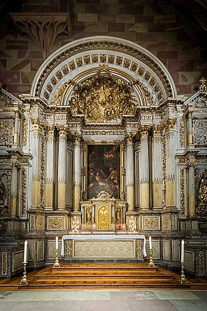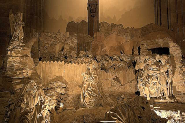 En face, du côté Ouest, contre le mur de l’abside de l’actuelle chapelle Saint-Laurent, se trouve une monumentale sculpture du Mont des Oliviers. Celle-ci est commandée, en 1498, par Nicolas Roeder, pour le cimetière de l’Eglise Saint-Thomas, avant d’être transférée dans la Cathédrale, en 1667.
