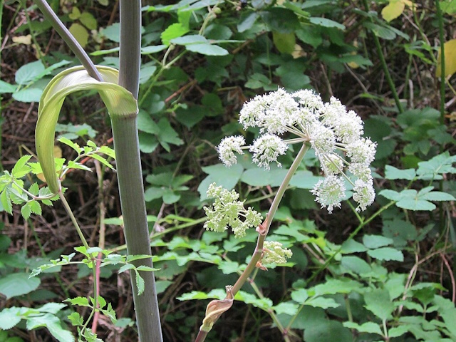 La Fausse Angélique appelée aussi l'Herbe aux Goutteux ou Podagraire, fait partie de la Flore sauvage, qui pousse en Saône-et-Loire, en région Bourgogne-Franche-Comté, en France. Elle porte divers noms : Angélique des bois, Angélique sauvage, Angélique des prés, Angélique sylvestre, Faux Panais, Herbe à la fièvre, Impératoire sauvage ou encore Panais sauvage. L'Angélique Sylvestre est une grande plante vivace haute de 50 à 150 cms, qui peut atteindre 2 m. Elle dresse au-dessus d'une racine pivotante, une épaisse tige glauque ou rougeâtre, creuse, côtelée, rameuse dans sa partie supérieure. Attachées à de longs pétioles, ses larges feuilles basales ou inférieures, dont le limbe triangulaire peut atteindre 60 cms, sont bi- ou tripennées et leurs folioles lancéolées à ovales, dentées en scie. D'autres feuilles situées à la mi-hauteur de sa tige ont des folioles sessiles de 3 à 8 cms. La face inférieure des folioles est pubescente. De volumineuses gaines foliaires enserrent le départ des rameaux et des pétioles. Toutes les parties de la plante (tige, pétioles, feuilles, fleurs, fruits, racine) sont comestibles et connaissent des usages culinaires. L'Angélique sauvage est considérée comme le parent pauvre de l'Angélique officinale : son utilisation est tout aussi polyvalente et elle peut remplacer sa cousine, cultivée dans la plupart des recettes de plats sucrés et salés, mais sa saveur est jugée plus sauvage et moins aromatique.