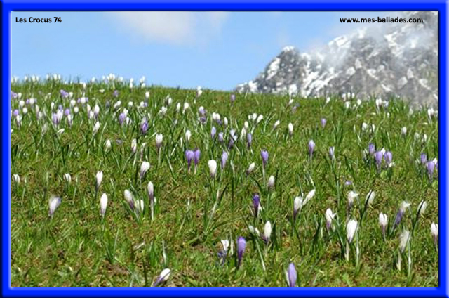 Le Crocus fait partie de la Flore de la Haute-Savoie, en région Auvergne-Rhône-Alpes, en France. Annonciateur des beaux jours qui reviennent, le Crocus fait partie des premières fleurs printanières. Le Crocus fleurit de Mai à Juin et pousse à une altitude de 600m à 2500 m. Sa taille varie de 8 cm à 15 cm. Il fait partie de la Famille des Iridacées. Les Crocus poussent en groupe. Leurs fleurs sont violettes, blanches ou rayées. La corolle est soudée à la base. Ses feuilles herbacées sont étroites.