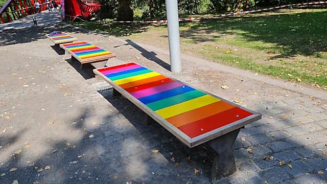 Voila toute une partie de Bruges que je tenais à vous faire découvrir et qui nous a vraiment comblés de plaisir. Ce qui manque dans cet endroit, sont de petits bancs, qui auraient été fort appréciés, pour se reposer, comme celui que nous avons découvert près d'un pont rouge, et qui était agréablement décoré.