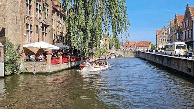 Nous voici de retour à Bruges, située dans la Province Occidentale, dans la région Flandre, en Belgique. C'est ma seconde visite à Bruges. Comme il fait très chaud, nous allons rechercher un endroit, où se trouve la fraicheur et la beauté des extérieurs de Bruges à vous faire découvrir. Nous décidons de commencer notre visite par une promenade en bateau, sur les canaux, pour admirer certains aspects inconnus de la ville. Il y a de nombreux petits restaurants, installés au bord de l'eau, aussi si vous souhaiter découvrir les spécialités culinaires de la ville.