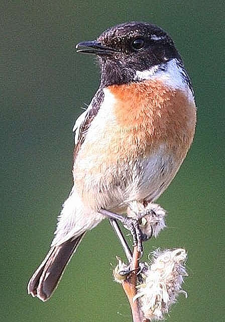 Le Tarier Pâtre fait partie de la Faune qui vit dans le département de la Mayenne, en région Nouvelle-Aquitaine, en France. Le Tarier Pâtre fait parie de la Famille des Muscicapidae, regroupées sous le nom scientifique de Saxicola torquatus. Le Tarier pâtre possède une silhouette trapue et ronde, facilement repérable. Le plumage postnuptial adulte devient plus terne, le noir des mâles est moins soutenu, la couleur orangée de la poitrine est délavée. Le demi collier et les taches alaires blanches sont très réduits chez les deux sexes. La femelle a un aspect brun uniforme, nuancée de gris, ce qui peut parfois rendre son plumage insipide en cette saison. Les juvéniles présentent un dessus brun noir fortement tacheté de blanchâtre et de roux, les sus caudale sont rousses, le dessous est jaunâtre marqué de noir, le miroir blanc est très restreint chez le mâle, absent chez la femelle. Le plumage des oiseaux de premier hiver ressemble à celui de la femelle adulte, sans collier, le croupion chamois étant tacheté de noir. Le Tarier Pâtre mesure 13 cm, son poids varie de 14 gr à 17 gr. Le Tarier Pâtre vit jusqu'à 5 ans. L'envergure de ses ailes est de 18 cm à 21 cm. Ses oeufs sont bleus. Le rougequeue à front blanc occupe l’ensemble de l’Aquitaine à l’exception d’une partie du bassin versant de l’Adour. Le Tarier Patre fait partie des espèces protégées.