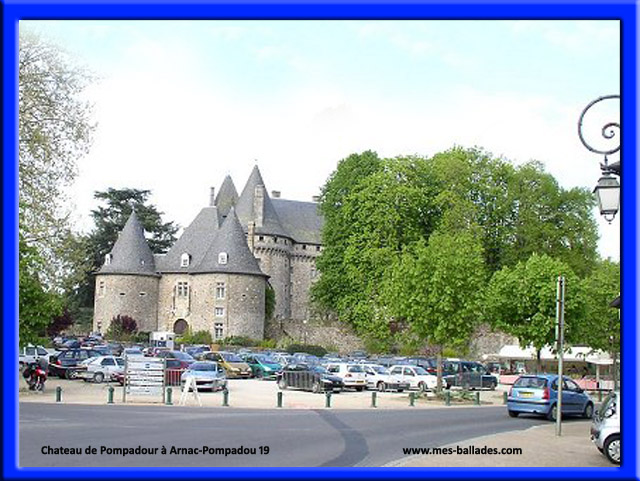 Le Château de Pompadour se dresse sur le village d'Arnac-Pompadour, dans le département de la Corrèze, en région nouvelle-Aquitaine, en France. Le village d'Arnac-Pompadour est aussi appelé le village Pompadour. Il totalisait en 2008, 1 245 habitants. Le château de Pompadour fut offert par le Roi Louis XV, à sa favorite Mme d'Etioles qui prit le nom de Marquise de Pompadour.