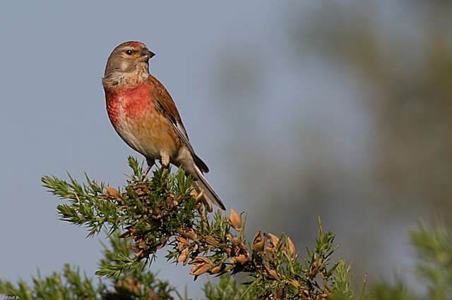 La Linotte mélodieuse est un oiseau sauvage, qui appartient à la Faune sauvage de l'Indre-et-Loire, en région en région Centre-Val-de-Loire, en France. La Linotte mélodieuse est appelée aussi Linaria cannabina, et anciennement, Carduelis cannabina). C'est un petit passereau brun, à la poitrine rosée, de la Famille des Fringillidés. Son gazouillis est agréable et doux, son vol vif et léger. On la retrouve dans les espaces agricoles extensifs. La Linotte Mélodieuse aime nicher dans les milieux semi-ouverts, des plaines et des montagnes. La Linotte mélodieuse fréquente les zones découvertes à végétation buissonnante, la campagne cultivée à proximité des haies, les terres arables entourées de broussailles et de buissons, les fourrés et les landes broussailleuses, les plantations de jeunes conifères, les vergers et les jardins. La Linotte mélodieuse consomme essentiellement des graines (crucifères, graminées, chardons, bourgeons) qu’elle prélève directement sur les plants ou qu’elle glane, souvent, sur le sol. Le nom "Linotte" proviendrait d'ailleurs du fait que l'oiseau est friand de graines de lin. La Linotte mélodieuse installe son nid, fait à la va-vite, proche du sol, sans chercher à le dissimuler des prédateurs. Cela lui vaut cette utilisation péjorative de son nom, dans le langage des humains : « tête de linotte ». Il contient environ 4 à 6 œufs blancs légèrement bleutés, tachetés, ponctués de noir et de brun roux. Bien que le mâle chante parfois en vol, l’essentiel de sa parade a lieu au sommet d’un buisson, sur une clôture de jardin ou le toit d’une maison. Durant la parade amoureuse, le mâle débite ses strophes grinçantes et gazouillées particulièrement mélodieuses, en bombant le torse, exhibant le rouge de sa poitrine, tout en agitant les ailes et en étalant sa queue bordée de blanc. Il se pose à côté de la femelle, sur un perchoir dégagé et peu élevé, puis l’accouplement a lieu à l’issue de cette démonstration.