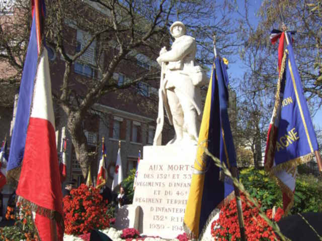Le Monument de Mémoire des 232e, 332e Régiment d'Infanterie et 46e Régiment Territorial se situe Place Léon Bourgeois à Reims 51100. Il a été conçu par l'architecte Emile Fanjat. Il fut créé grace à une souscription publique, lancéeen 1921, à l'initiative des anciens du 132e R.I., installée avant guerre dans la Caserne Neufchatel, pour honorer la mémoire des soldats tombés aux Eparges, entre le 23/10/1914 et le 12/04/1915. La statue a été conçue par l'Architecte Émile Fanjat, avec la collaboration du Sculpteur rémois Paul Lefebvre.