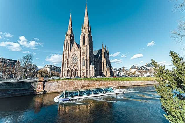 Située près de la frontière avec l'Allemagne, Strasbourg arbore une culture et une architecture, aux influences françaises et allemandes. La Cathédrale gothique Notre-Dame de Strasbourg propose des animations quotidiennes, sur son horloge astronomique et une vue panoramique, sur le Rhin, à mi-hauteur, de son clocher, haut de 142 mètres.