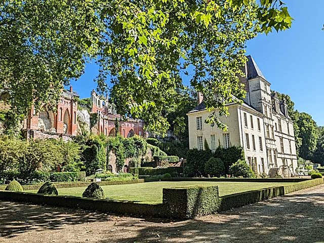 On y découvre un jardin intimiste, un jardin avec une charmille de 6 mètres de haut, un labyrinthe, une terrasse entourée de tilleuls, etc…