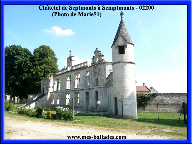 Le château de Septmonts fut, durant plusieurs siècles, la résidence préférée des Evêques de Soissons, dans l’Aisne. C’était aussi le siège principal de leurs pouvoirs. Le donjon passe pour être une des constructions les plus originales du Moyen Age, avec son style Renaissance.