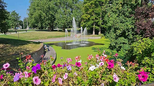 Par endroits, nous découvrons de jolis massifs fleuris et de petits jets d'eau qui nous aideront à nous rafraichir. Ce petit coin de paradis me fait penser à une petite Venise, implantée au coeur de la Belgique. Le plan d'eau est recouvert d'une multitude de petites lentilles, qui forment un charmant tapis verdoyant.