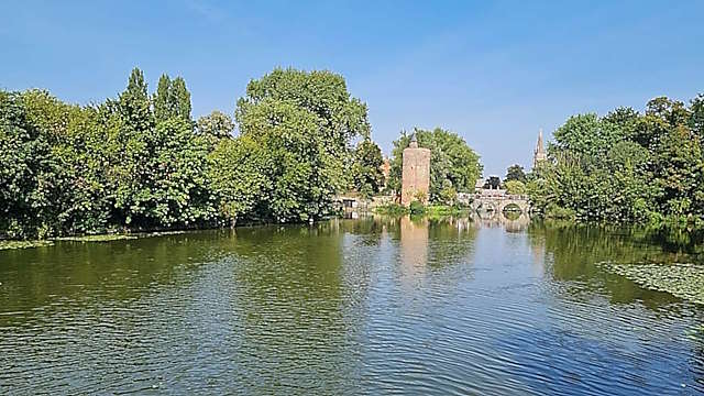 L'endroit est magnifique, avec ce plan d'eau, ses arbres verdoyants qui nous abritent du soleil, et cette tour mystérieuse, que nous décidons d'aller découvrir.