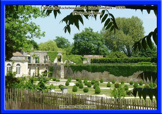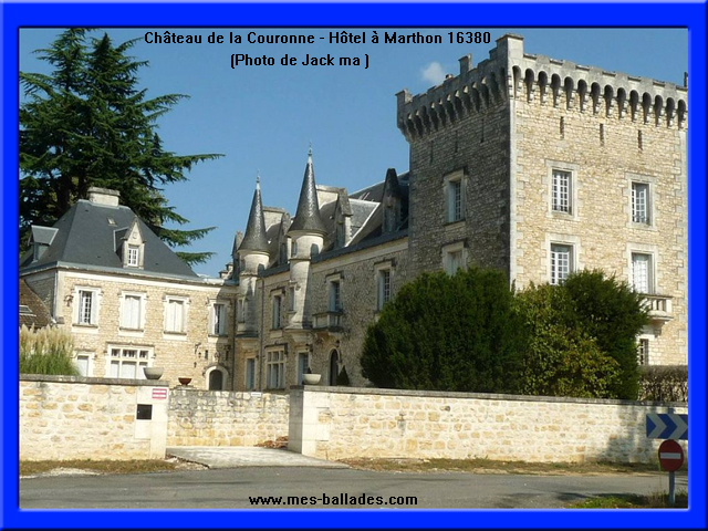 Au détour de mes ballades, je chantonne, en parcourant, dans le département de la Charente, en région Nouvelle-Aquitaine, en France. Je me nomme Marie51 et vous invite à découvrir les plus beaux Châteaux, Châteaux-forts, Forteresses, Logis et Manoirs, les plus intéressants du département de la Charente, en région Nouvelle-Aquitaine, en France. Voici une première liste des 112 Châteaux découverts, dans le département de la Charente, bien qu'ils soient nombreux, en souhaitant vous donner envie de les découvrir, ou mieux, de les visiter et vous intéresser, à leur histoire, qui fait partie de notre Patrimoine historique passionnant. Certains châteaux sont indiqués comme privés. Ils servent d'habitation privés. Merci de respecter leur vie privée.