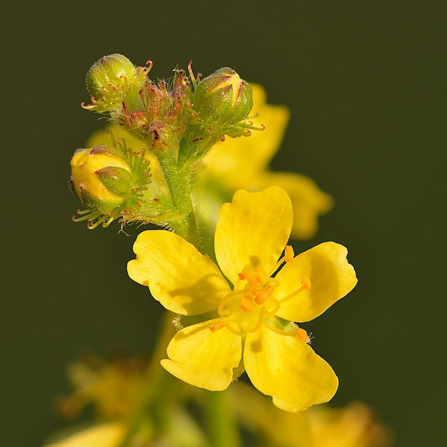 L'Aigremoine fait partie de la Flore sauvage du département de la Creuse, en région Nouvelle-Aquitaine, en France. L'Aigremoine eupatoire est aussi appelée Agrimonia eupatoria. L'Aigremoine est une plante herbacée vivace, rhizomateuse, commune dans toute l'Europe. Elle fait partie de la Famille des Rosacées. Les fleurs sont jaunes, assemblées en grappes terminales? pouvant s'élever jusqu'à un mètre du sol. Les fruits sont des akènes, marqués de sillons. Ils possèdent des poils crochus à leur sommet et se détachent, facilement, ce qui facilite leur dissémination, par les animaux ou les êtres humains. La tige est velue, rougeâtre, non ramifiée et porte une rosette basale de feuilles composées de 3 à 6 paires de folioles principales, entre lesquelles, s'intercalent des paires de folioles, plus petites. La tige était utilisée pour ses propriétés tinctoriales (teinture jaune d'assez bonne qualité). Toutes les parties tendres de l'Aigremoine eupatoire, y compris la fleur sont comestibles, parfois utilisées comme herbe aromatique, en cuisine. Elles sont mangées crues, en salade ou cuites (cuisinées comme des légumes). Les feuilles et fleurs sont récoltées en début de floraison, en infusion, et donnent un thé au goût légèrement citronné.