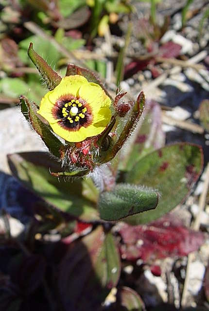 La Tubéraria Guttata est une plante sauvage qui vit dans le département de la Dordogne, en région Nouvelle-Aquitaine, en France. L'Hélianthème taché, appelé aussi Tubéraire à gouttes ou Hélianthème à gouttes ou Tuberaria Guttata, est une petite plante annuelle, aux feuilles tomenteuses de la Famille des Cistacées. Son Habitat type : tonsures annuelles acidophiles, européennes. Cette espèce fleurit de Mai à Août, en milieu sec. Elle produit des fleurs jaunes en cyme unipare hélicoïde, à pollinisation entomogame ou autogame. Le fruit est une capsule. Ses graines sont disséminées par épizoochorie.