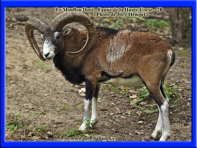 Le Mouflon corse est un mamifère qui fait partie de la Faune de la Corse. Le mouflon corse est une sous-espèce (Ovis aries/orientalis musimon1) de mouflon endémique à la Corse et à la Sardaigne. Il faut être patient pour en apercevoir, les mouflons se réfugiant dans les montagnes, notamment dans les réserves du Cinto et de Bavella. Actuellement, la population est estimée à environ 500 têtes. L'espèce n'était pas présente en Corse avant le Néolithique et le Mouflon Doré doit donc être considéré comme un mouton (domestiqué à partir de deux sous-espèces de mouflon occidental) apporté par des éleveurs en Corse et en Sardaigne puis retourné à l'état sauvage (processus de marronnage). Il y a 500 Mouflons dorés actuellement. Le Mouflon de Corse est classé comme espèce protégée nationale en Corse.