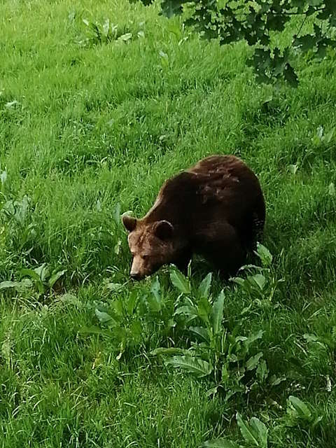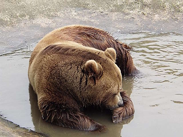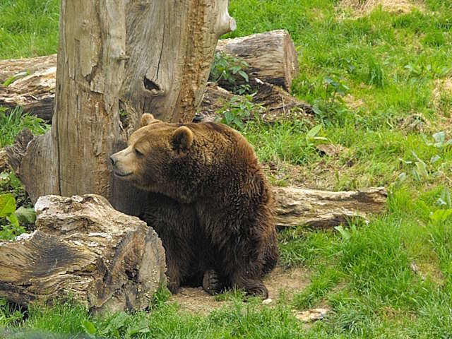 Cet ours brun parait jouer à cache-cache, sous le regard amusé des visiteurs. Il s'appelait Miijen. Il est décédé depuis...